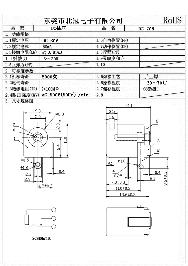 Typical Specifications 1. Rating : DC 30V 0.5A 2. Contact Resistance : 70ΩMax 3.Lnsulation Resistance: DC500V 1Minute 4.Operating Temperature Range: -25℃+80℃ 5.Ambient Humidity Used: ≤85%RH 6. Operating Force : 3-20N 7. Operating Life : 5,000Cycles