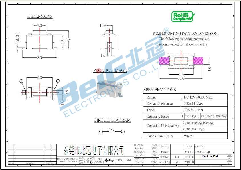 產(chǎn)品名稱:TS-019輕觸開(kāi)關(guān)