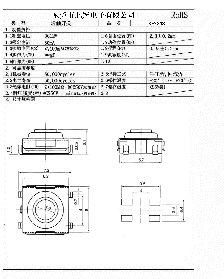 產(chǎn)品名稱:TS-284S輕觸開關(guān)