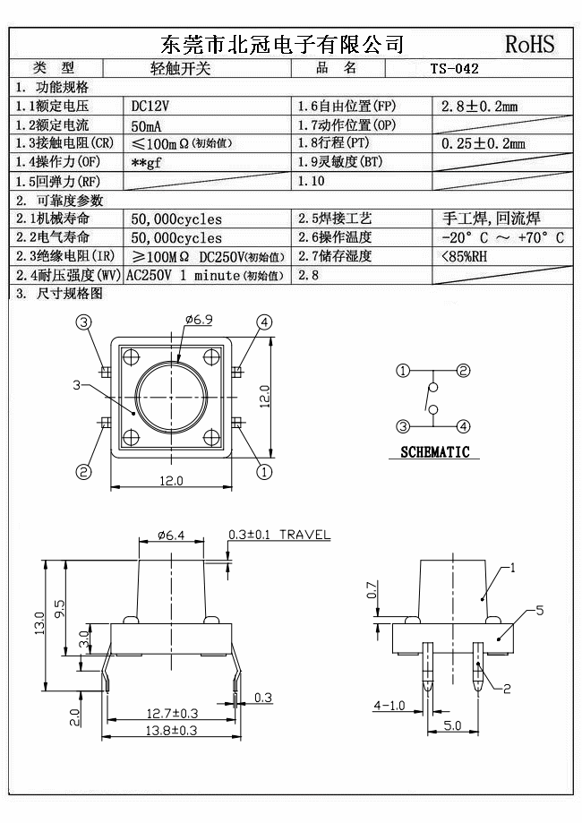 產(chǎn)品名稱:TS-042輕觸開關(guān)