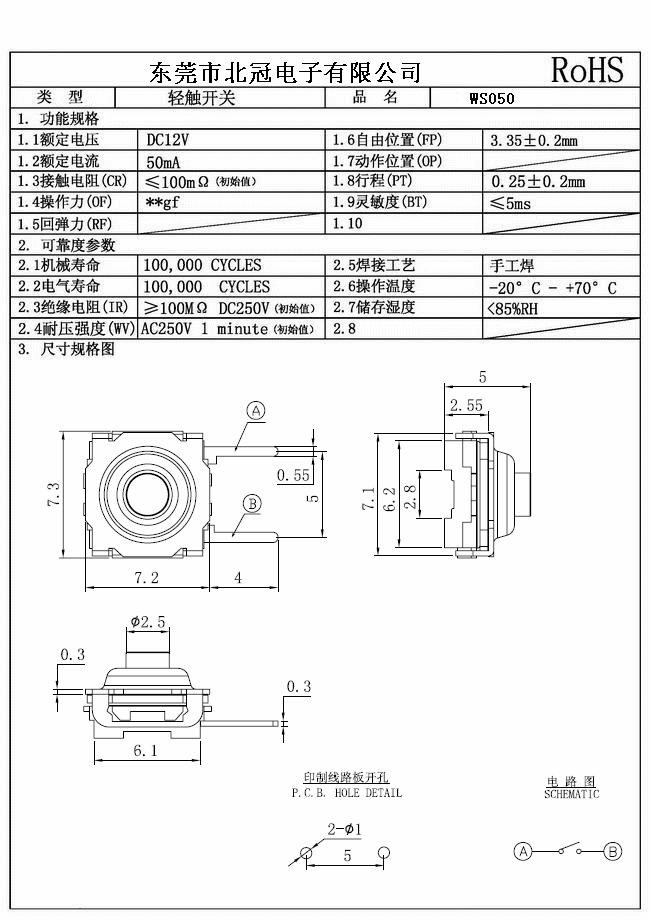 3.Lnsulation Resistance: ≥100mΩ DC250V