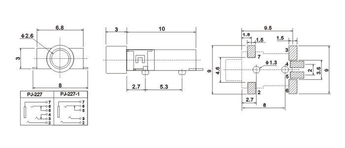 產(chǎn)品名稱:PJ-227 品名:2.5耳機插座 |