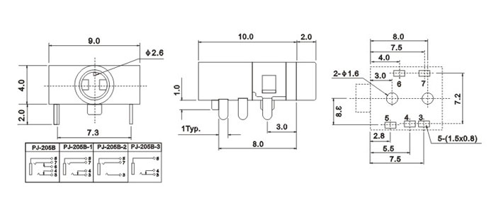 產(chǎn)品名稱:PJ-205B 品名:2.5耳機(jī)插座 |