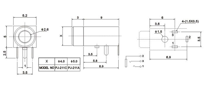 產(chǎn)品名稱:PJ-211A 品名:2.5耳機(jī)插座 |