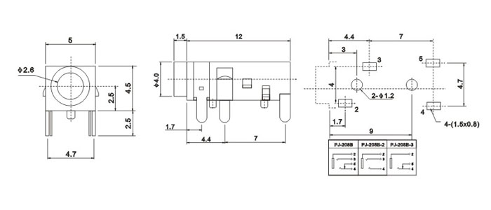 產(chǎn)品名稱:PJ-208B 品名:2.5耳機插座 |