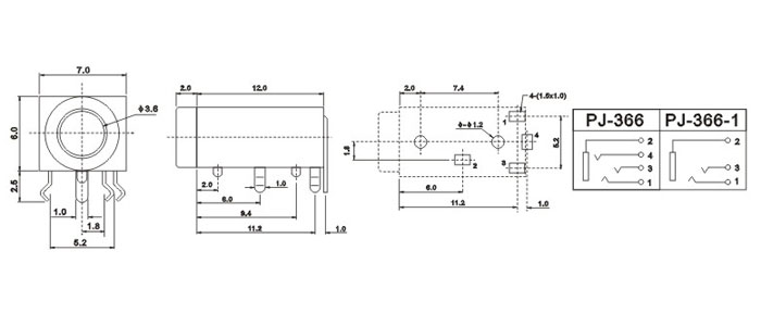 產(chǎn)品名稱:PJ-366 品名:3.5耳機(jī)插座 |
