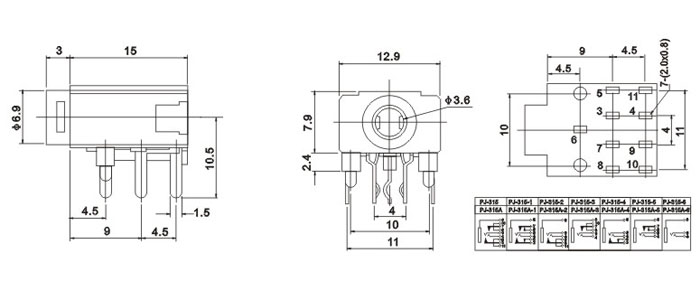 產(chǎn)品名稱:PJ-315A 品名:3.5耳機(jī)插座 |