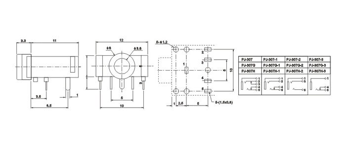 產(chǎn)品名稱:PJ-307G 品名:3.5耳機(jī)插座 |